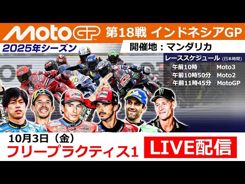 【ライブ配信】MotoGP™︎第17戦インドネシアGP フリープラクティス1(全クラス)|2025シーズン